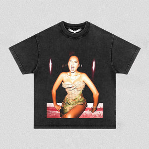 This t-shirt is a relaxed fit; true to size. We recommend sizing up if you prefer an oversized fit.