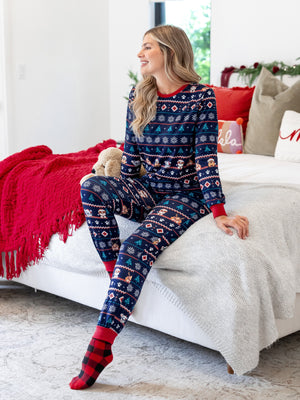 • Each pajama set includes a pair of festive buffalo plaid socks.