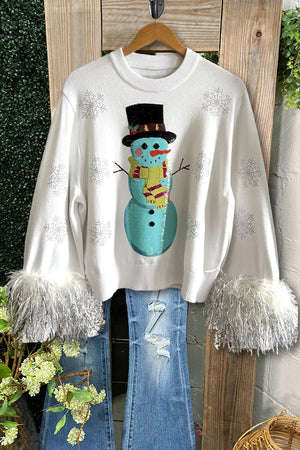 Stay on trend this season in our new casual, round neck sweater. We especially love the christmas fabric and think this piece will be a new favorite in your closet!
