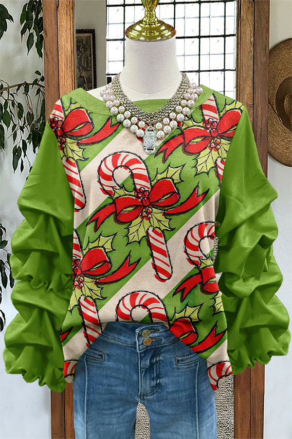 Cute Merry Christmas Candy Canes Print Pleated Sweatshirt