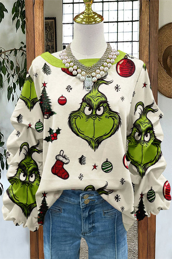 Funny Christmas Grinch Print Pleated Sweatshirt
