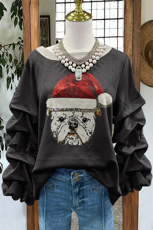 Shiny Christmas Gameday Bulldog Print Pleated Sweatshirt