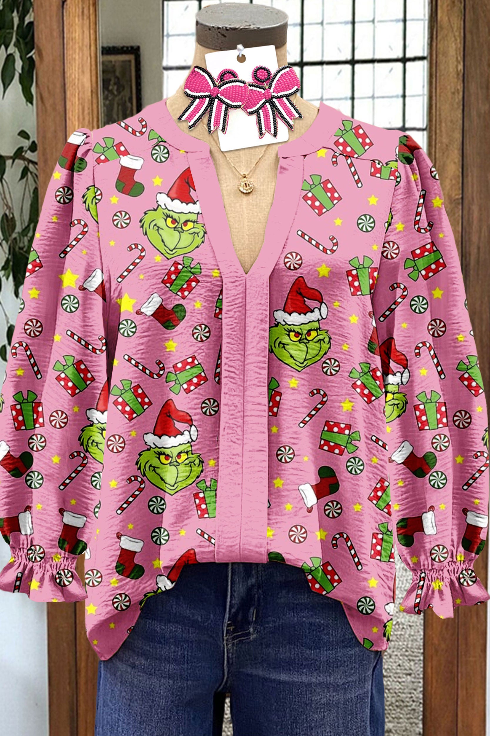 Stay on trend this season in our new casual, v neck blouse. We especially love the cartoon print fabric and think this piece will be a new favorite in your closet!