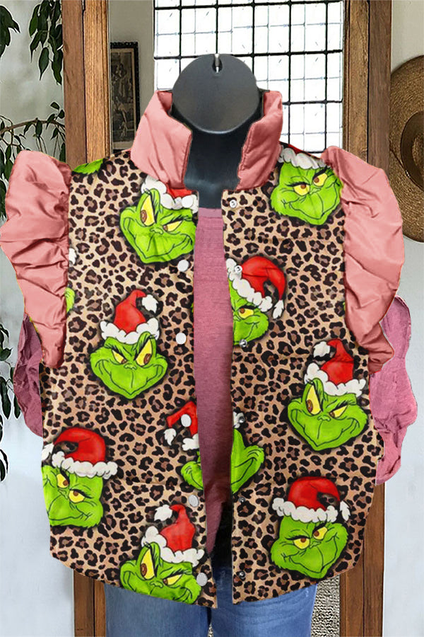 Sweet Christmas Grinch Leopard Print Ruffle Vest