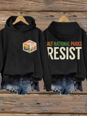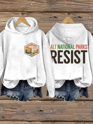 Retro ALT National Parks Resist This Land Is Our Land Print Hoodie