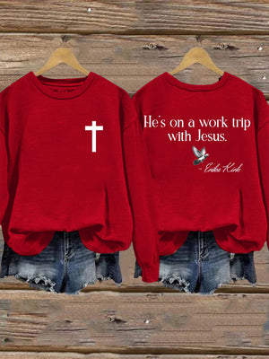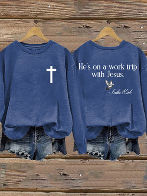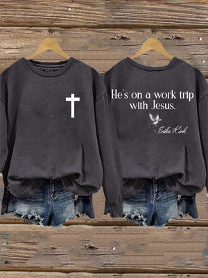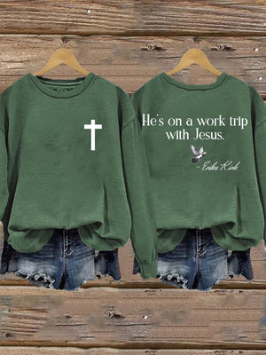 Retro He's On A Work Trip With Jesus Print Sweatshirt
