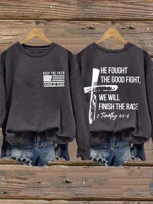 Retro Keep The Faith He Fought The Good Fight, We Will Finish The Race 2 Timothy 4:6-8 Print Sweatshirt
