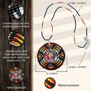 At the heart of the necklace lies a Beaded Patch, meticulously crafted with intricate patterns that pay homage to Indigenous heritage. Each bead is a thread connecting you to the stories and wisdom of generations past, creating a visual representation of unity and spirituality.