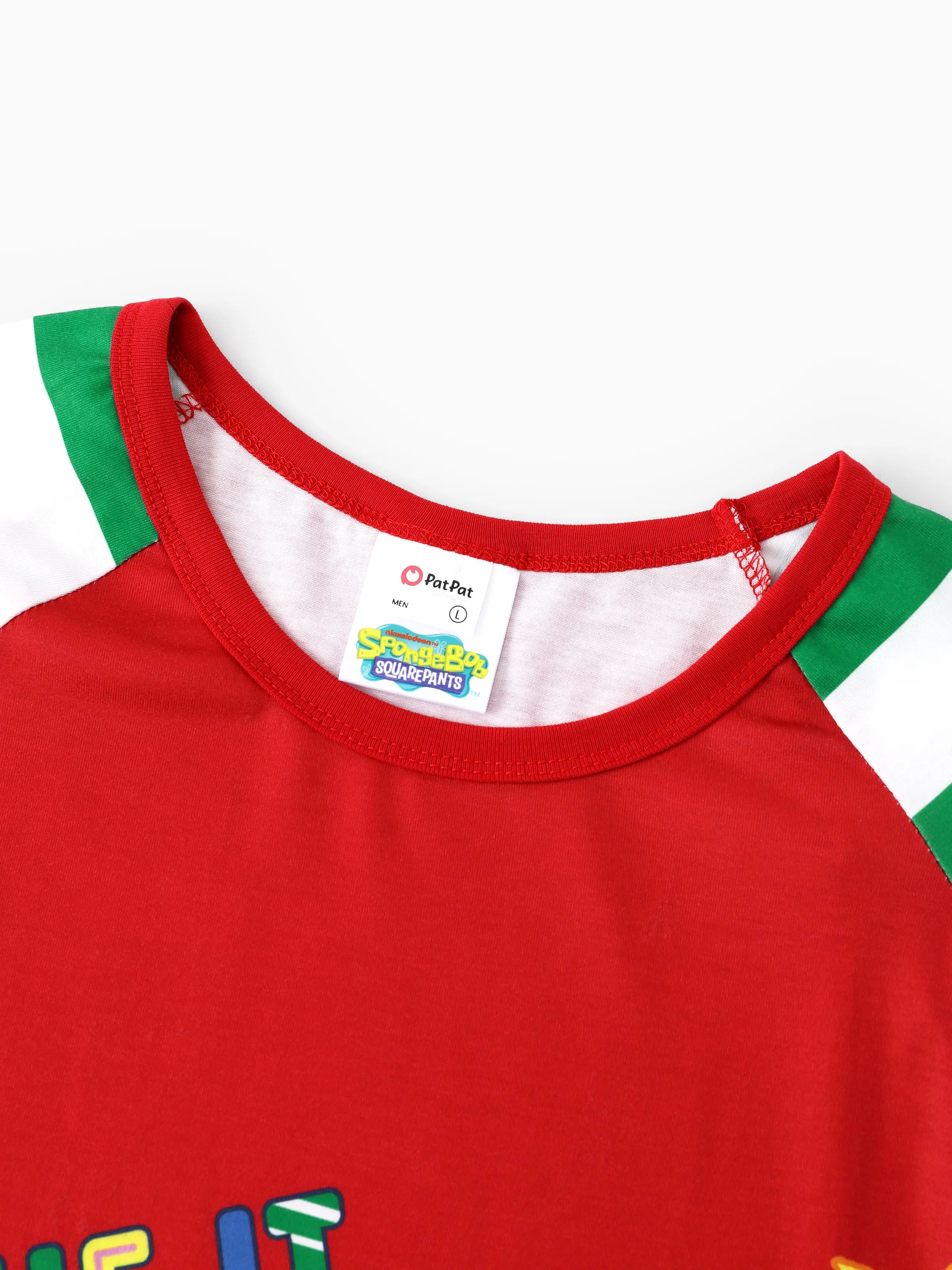 SpongeBob SquarePants Christmas Matching Family Striped Pajamas Set with Christmas Socks Red