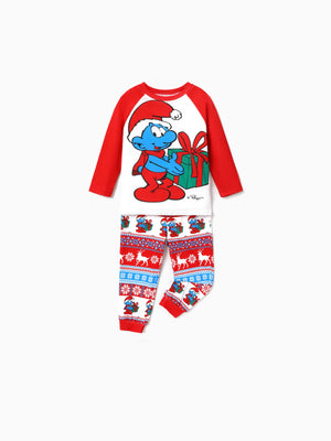The Smurfs Christmas Family Matching Color-block Pajamas Sets with Christmas Socks