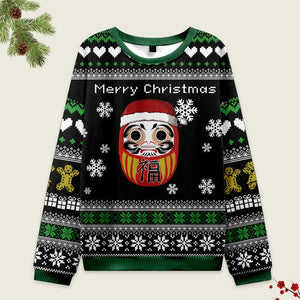 Tokyo-Tiger Japanese Daruma Black Christmas Ugly Sweatshirt