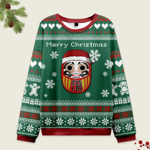 Tokyo-Tiger Japanese Daruma Green Christmas Ugly Sweatshirt