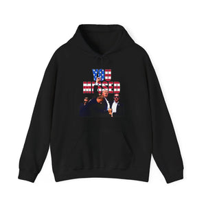 This shirt features an impactful design by Canadian rapper , known for his controversial and thought-provoking content. The shirt prominently displays an image of Donald Trump raising his fist, referencing the recent alleged assassination attempt at his Pennsylvania rally. The slogan “” is printed alongside the image, implying that the attempt failed and Trump survived, showcasing his resilience and defiance.