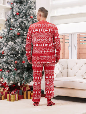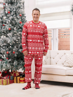 Traditional Christmas Print Family Matching Pajamas Sets with Christmas Socks Red