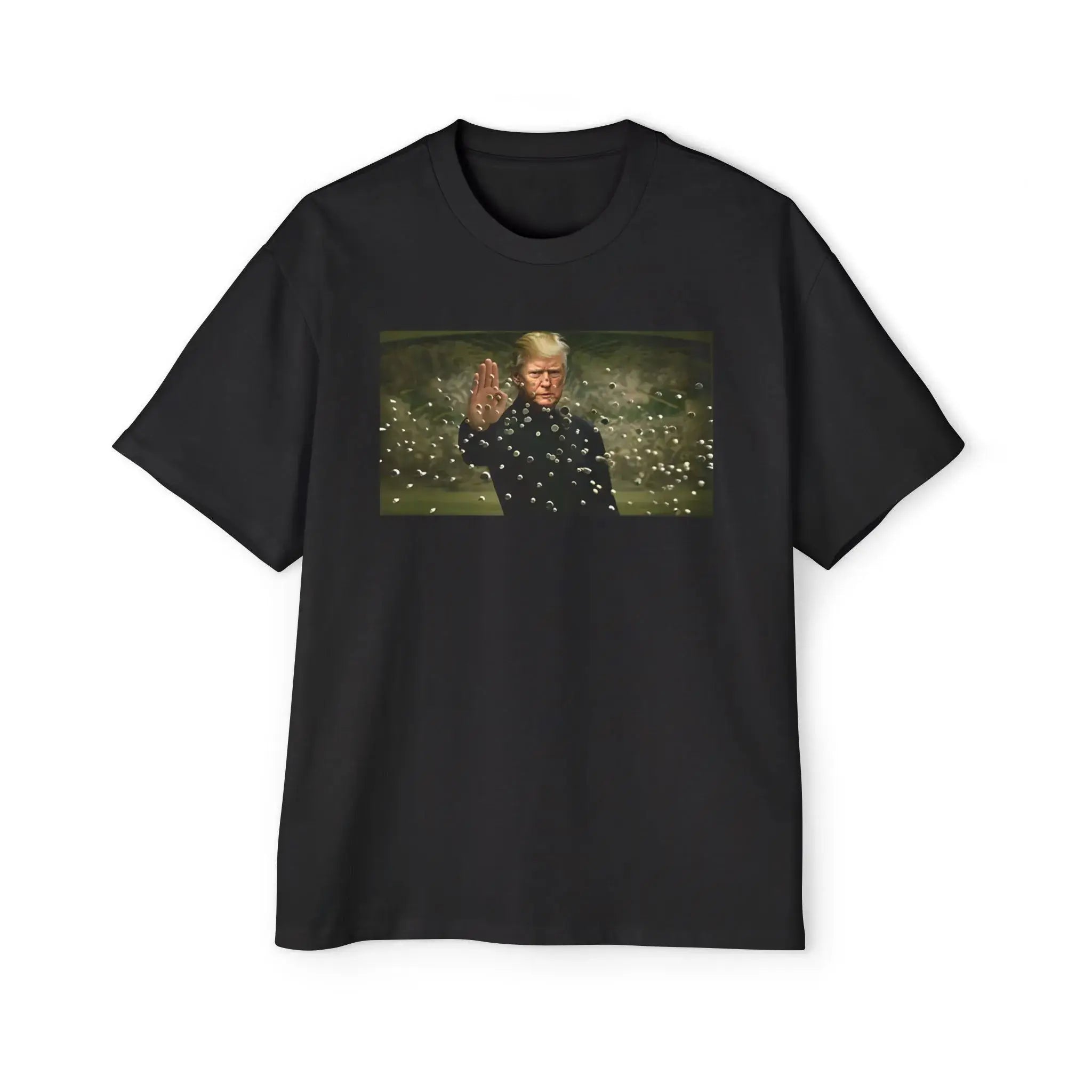 This shirt features an imaginative depiction of former U.S. as Neo from the Matrix franchise. The design was inspired by the recent shooting incident at a Trump rally in Pennsylvania, using the iconic image of Neo to symbolize Trump’s unwavering resilience and defiance in the face of danger.