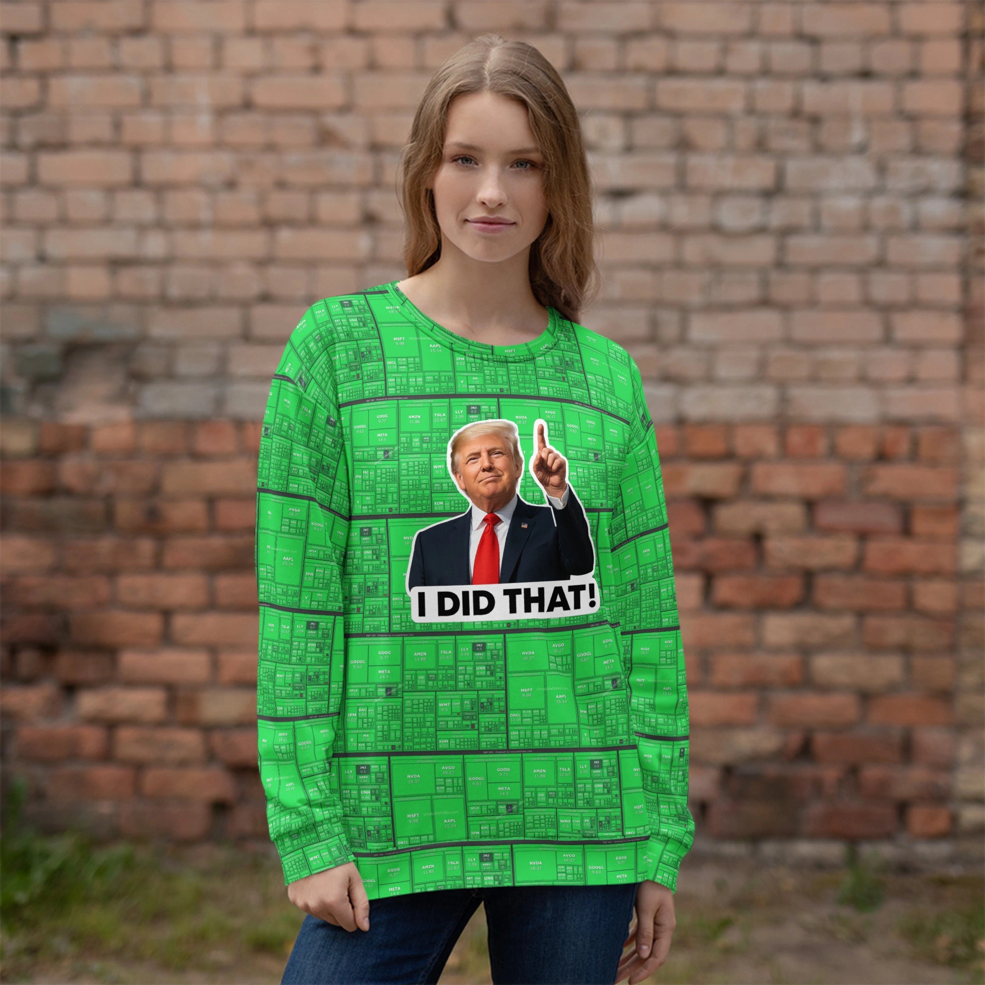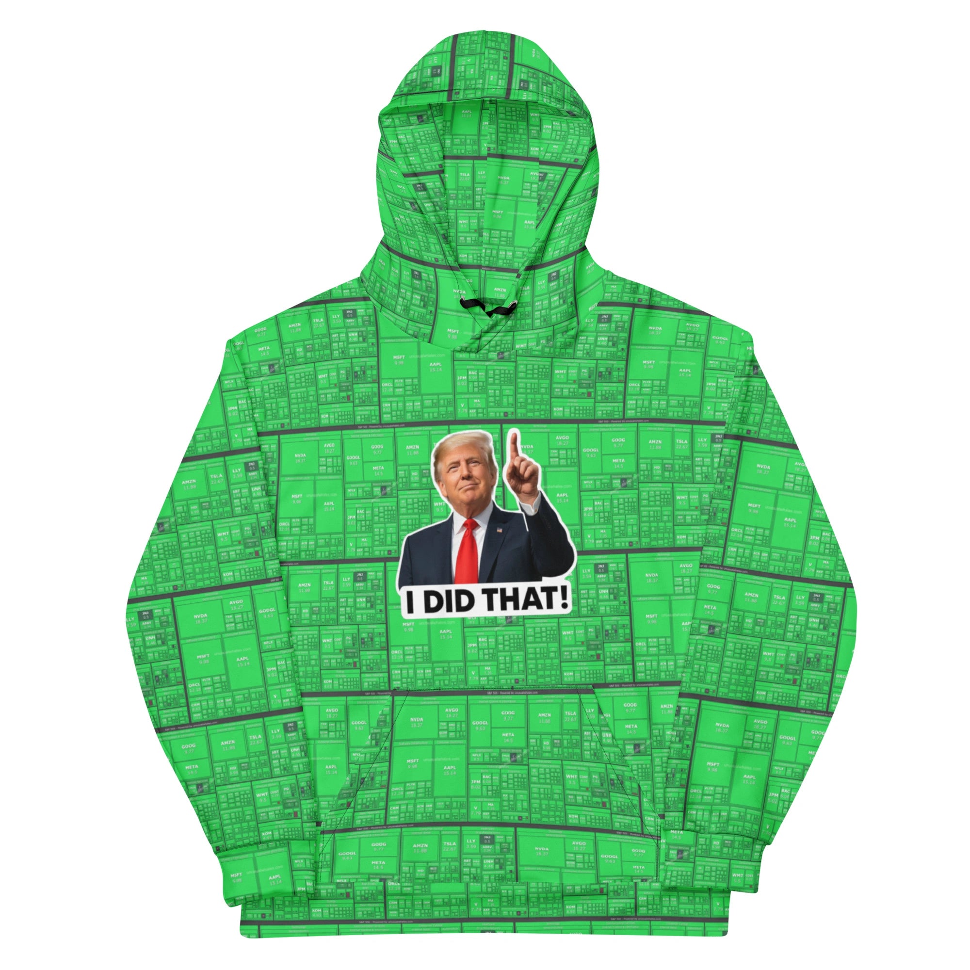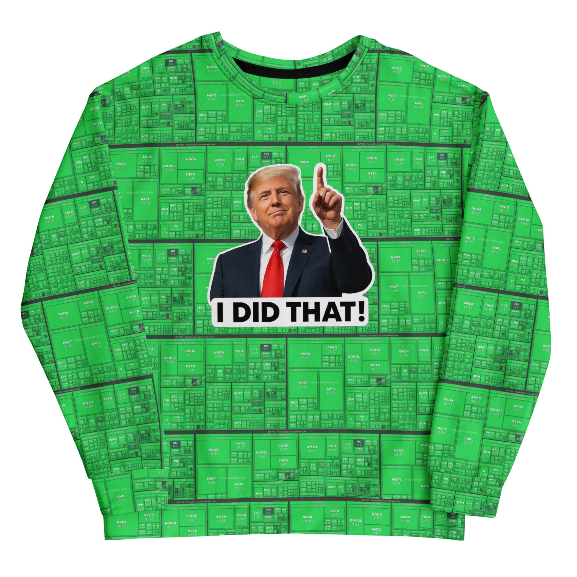 Welcome to the intersection of meme culture, Wall Street chaos, and political satire. The Trump Pump Shirt isn’t just a shirt—it’s a full-blown market mood board printed across your chest. Featuring an all-over pattern of a green heat map and the iconic “I DID THAT!Trump image smack in the middle, this shirt is for bulls, bros, and brave Americans alike.