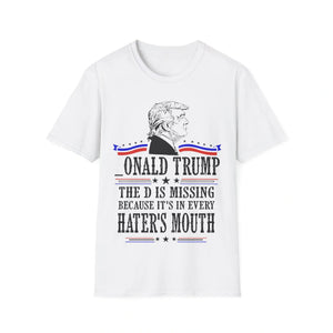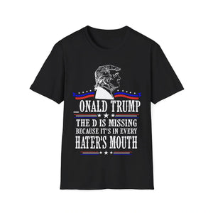 If you’re looking to grab attention with humor and wit, the “Trump the D is Missing Shirt” is perfect for you. This shirt features a humorous statement: “_onald Trump The D is Missing Because It’s in Every Hater’s Mouth,” offering a bold, cheeky take on the current political climate. Whether you’re a supporter or just enjoy a good laugh, this tee is ideal for starting conversations and sparking reactions.