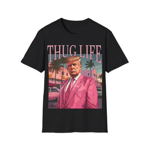 Crafted from high-quality, soft fabric, the Trump Thug Life Shirt combines comfort with a standout look. The GTA-inspired design adds an edgy touch, showcasing Trump in a pink suit and “Thug Life” shades, perfect for fans who appreciate a bold aesthetic. The design strikes a balance between humor and impact, making it a memorable addition to any Trump supporter’s wardrobe. Whether at a casual gathering or a political event, it’s sure to spark conversation and turn heads.
