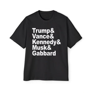 The shirt prominently features the names “Trump & Vance & Kennedy & Musk & Gabbard” in bold text, making it a striking statement for any supporter. Whether you’re heading to a political event, a casual gathering, or simply running errands, this shirt is a perfect way to show your belief in Trump’s leadership and the influential figures backing him. Moreover, it reflects a diverse coalition of supporters from various sectors, enhancing its appeal.