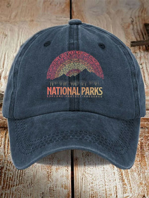 Unisex Distressed Washed Cotton Hot Spot 63 National Parks Explore, Protect, Preserve Printed Hat