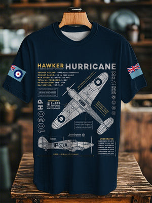 Unisex Retro Fighter Hawker Hurricane Print Casual Tee