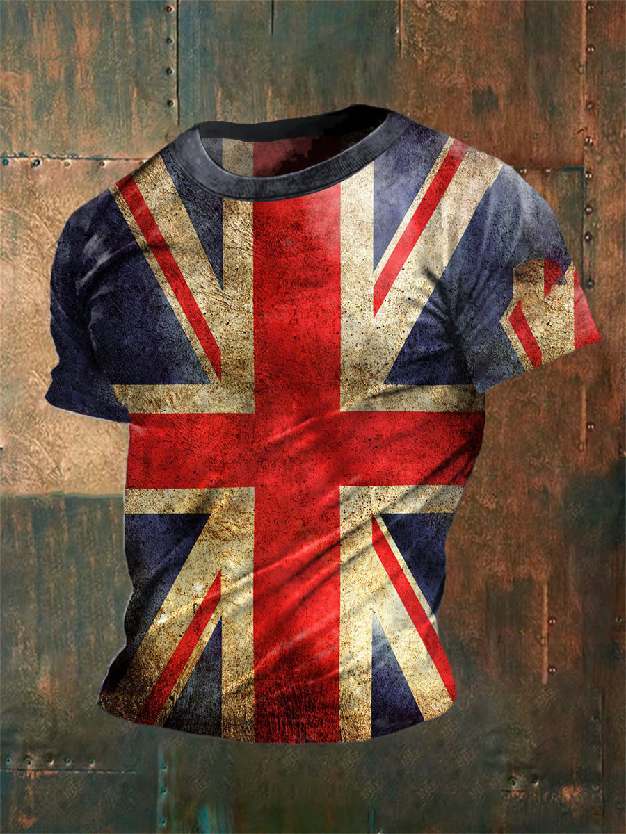 Unisex Vintage British Flag Aged Abstract Print Casual Cotton Short Sleeve T-Shirt