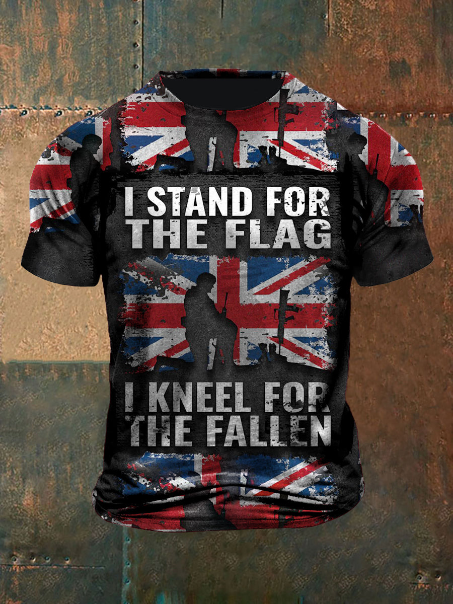 Unisex Vintage Veteran British Flag Abstract Print Casual Cotton Short Sleeve T-Shirt
