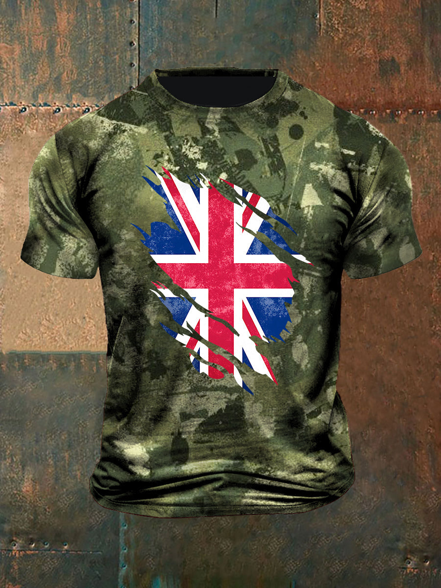 Unisex Vintage Veteran Camouflage British Flag Abstract Print Casual Cotton Short Sleeve T-Shirt