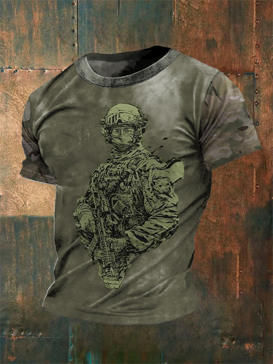 Unisex Vintage Veterans Camouflage Warrior UK Abstract Print Casual Cotton Short Sleeve T-Shirt