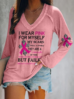 V-Neck Faith Breast Cancer Awareness I Wear Pink For Myself Long Sleeve T-Shirt