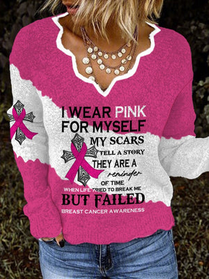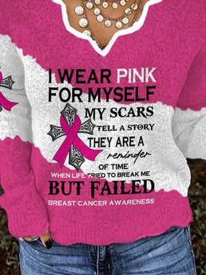 V-neck Faith Breast Cancer Awareness I Wear Pink For Myself Print Knit Tops