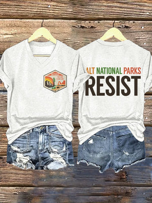 V-neck Retro ALT National Parks Resist This Land Is Our Land Print T-Shirt
