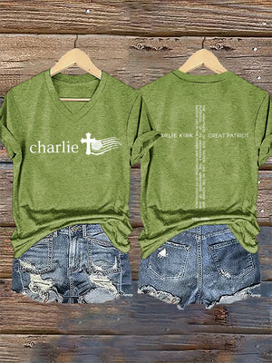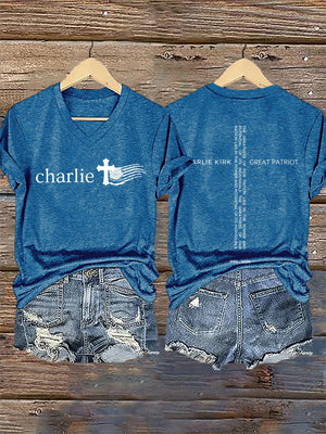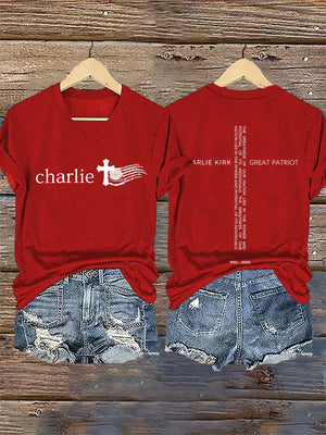 V-Neck Retro Faith Flag Cross The Greatness Of Our Nation Lies In The Power And Potential Of Its Individuals Print T-Shirt