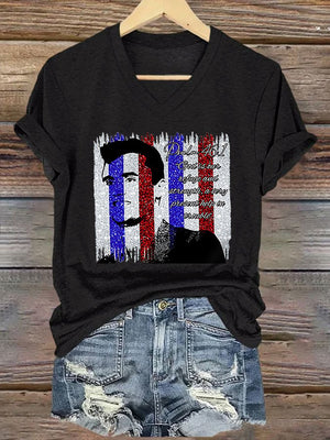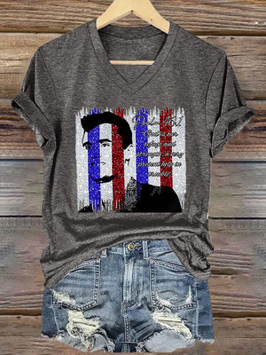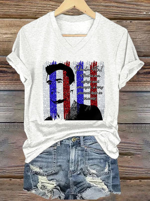 V-Neck Retro God Is Our Refuge And Strength, A Very Present Help In Trouble Print T-Shirt