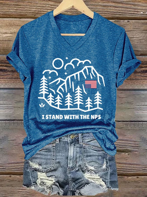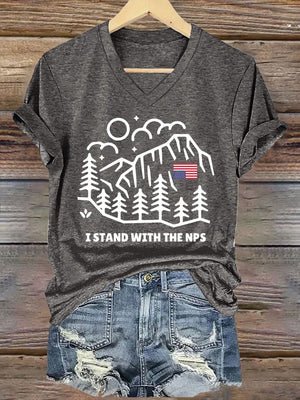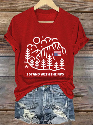 V-neck Retro I Stand With The NPS National Park Support Print T-Shirt