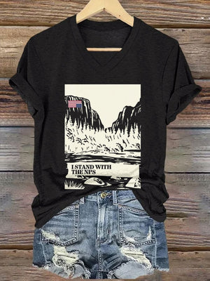 V-neck Retro I Stand With The NPS Print T-Shirt