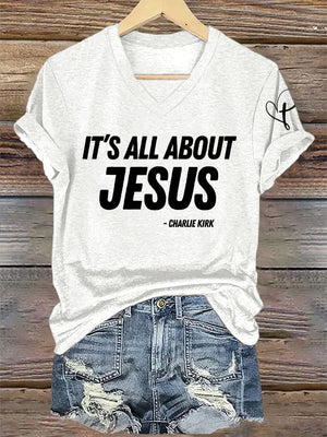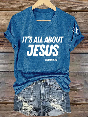 V-Neck Retro It's All About Jesus Print T-Shirt