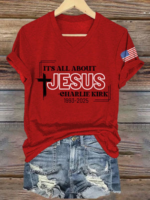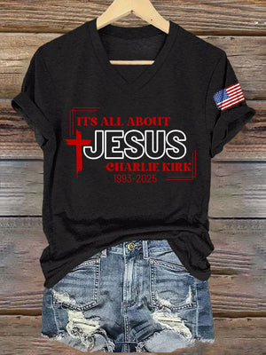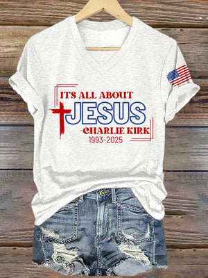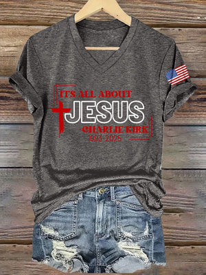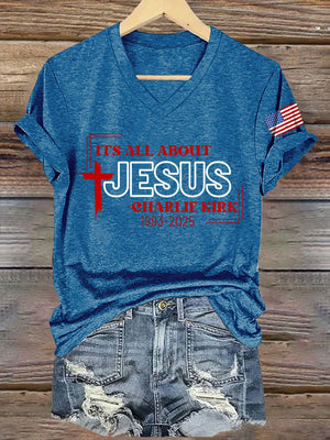 V-Neck Retro It's All About Jesus Print T-Shirt