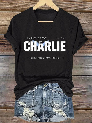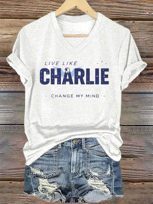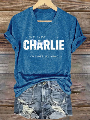 V-Neck Retro Live Like Change My Mind Print T-Shirt