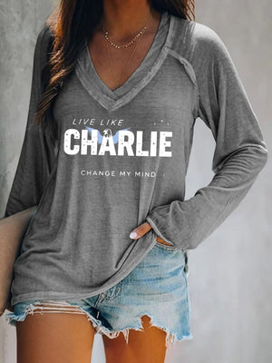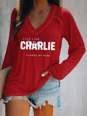 V-neck Retro Live Like Change My Mind Print T-Shirt