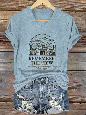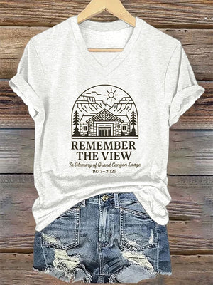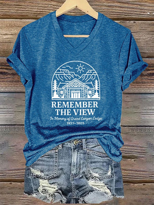 V-Neck Retro Remember The View In Memory Of Grand Canyon Lodge 1937-2025 Print T-Shirt