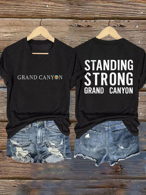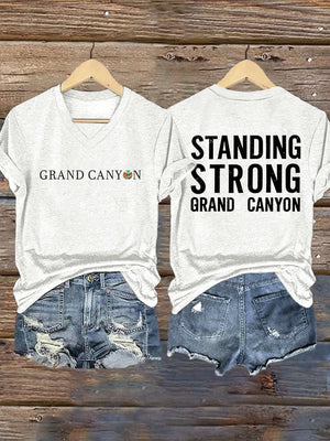 V-Neck Retro Standing Strong Grand Canyon Print T-Shirt