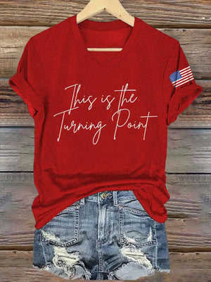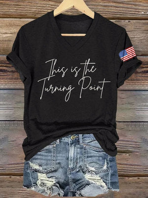 V-Neck Retro This Is The Turning Point Print T-Shirt