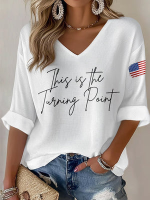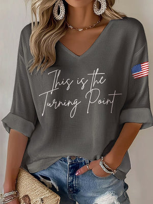 V-Neck Retro This Is The Turning Point Print T-Shirt