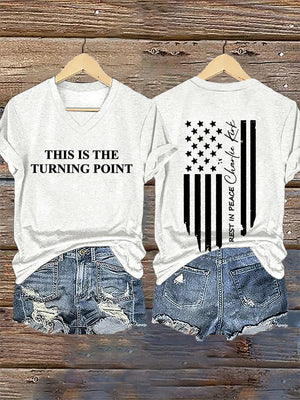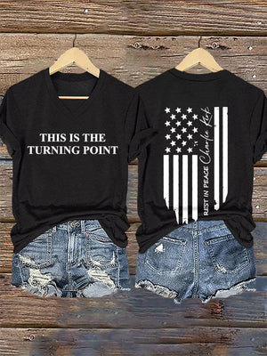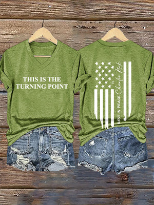 V-Neck Retro This Is The Turning Point Print T-Shirt