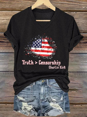 V-Neck Retro Truth > Censorship Print T-Shirt