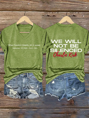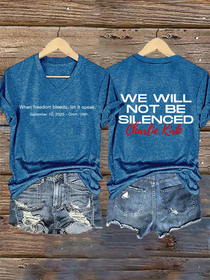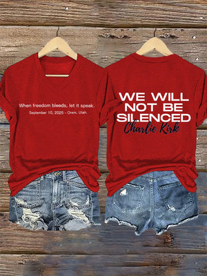 V-Neck Retro When Freedom Bleeds, Let It Speak September 10, 2025 – Orem, Utah We Will Not Be Silenced Print T-Shirt
