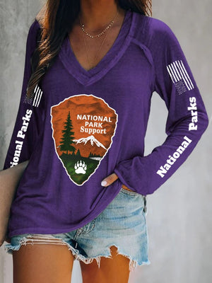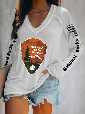 V-neck Retro Women's Protect Our National Parks Faith Print T-Shirt
