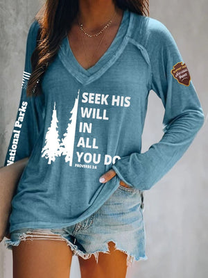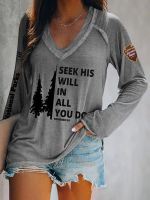 V-neck Retro Women's Protect Our National Parks Faith Print T-Shirt
