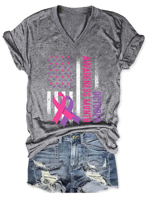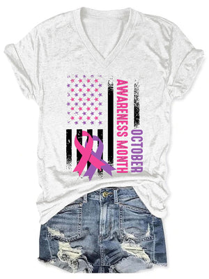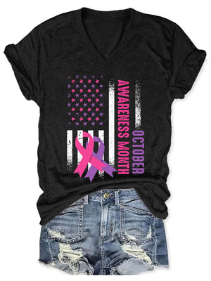 V-neck Women October Breast Cancer & Domestic Violence Awareness Month T-Shirt